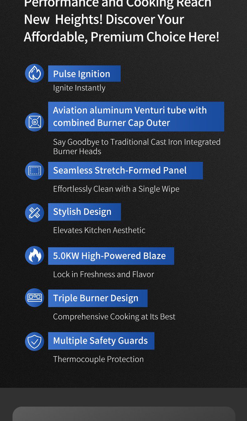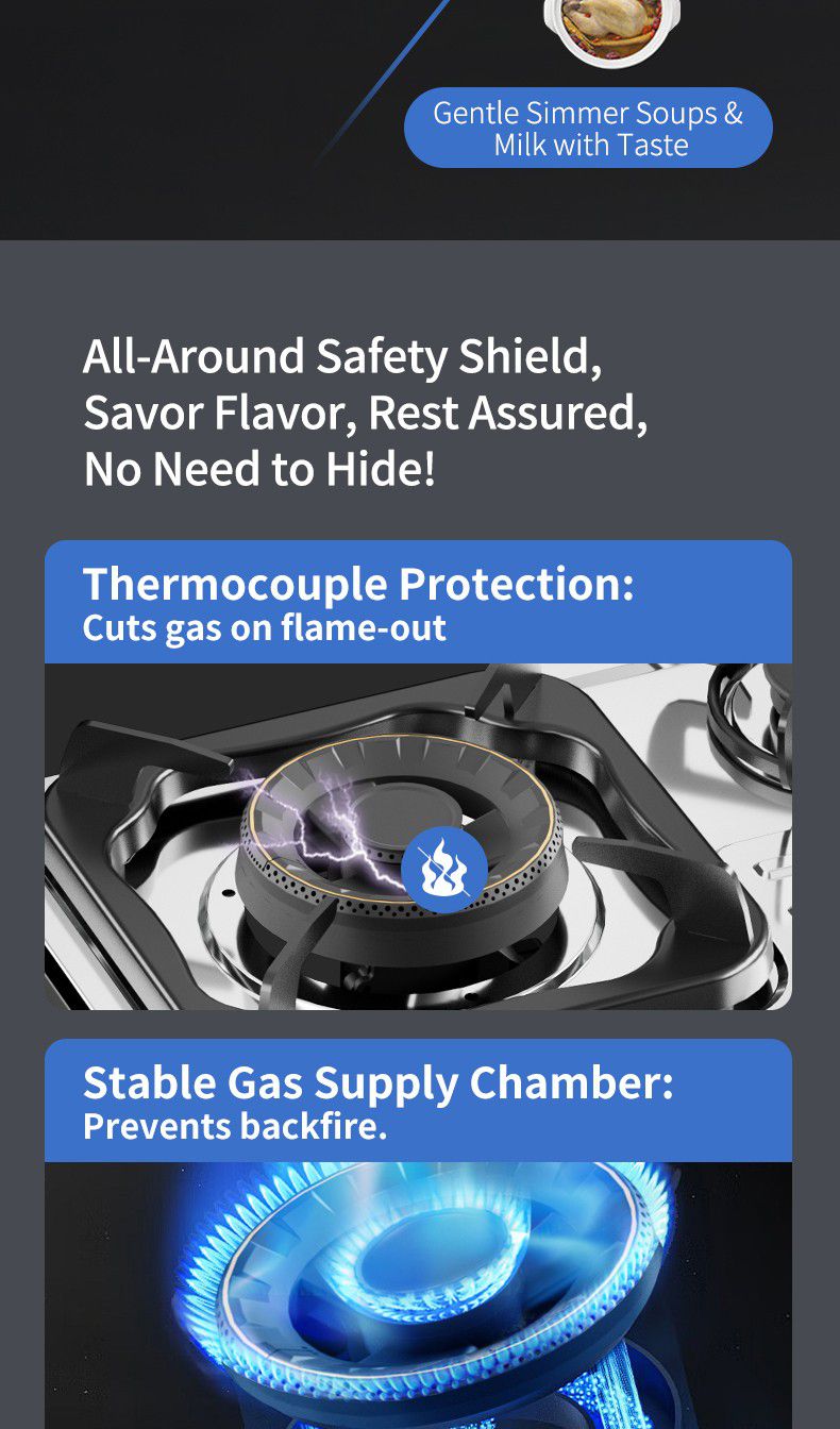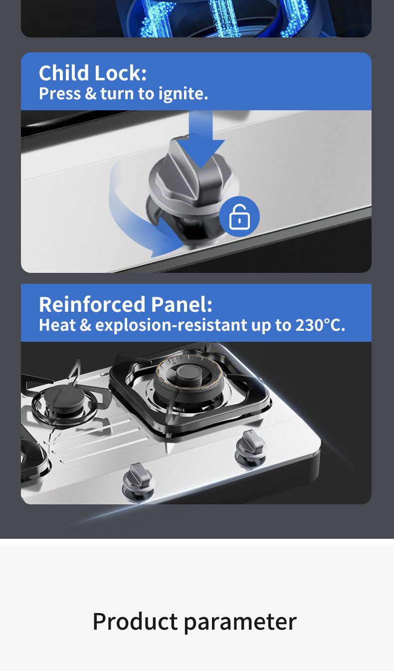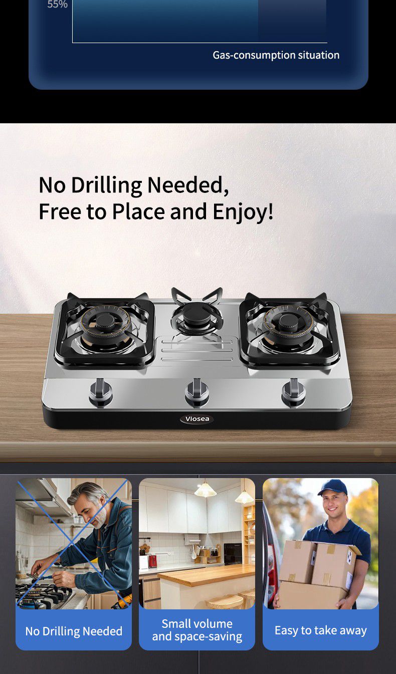 یہ ایک جدید سٹیل ٹیل ٹیل گیس کا ایک جدید ہے ۔ اسٹورن کے تین برن میں شامل ہیں ، ہر ایک سیاہ برن کے سر اور ایک سیاہ اور ایک ٹھنڈک کے جمع ہوتے ہیں ۔ اسٹور کا کنار چاندی ہے ، اور ایک سیاہ کنٹر پینل ہے ۔ گیس سٹو کی ڈیزائن سادہ اور جدید ، بہت سے عمدہ عمدہ ہے ۔ اس کے علاوہ سفید ہے ، کسی دوسرے چیز یا ثالث کے طور پر نہیں ۔